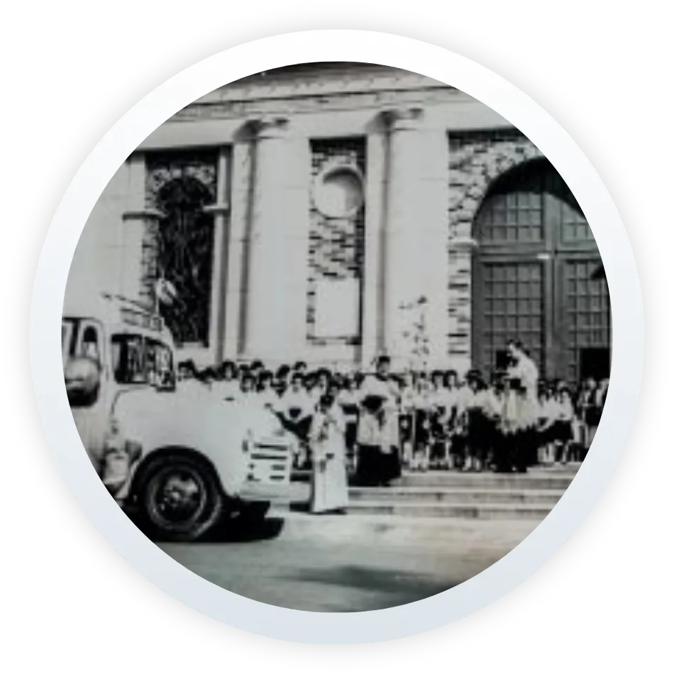 Bendición del bus Chevrolet por el padre Andelfo Arias iglesia dela sagrada familia.